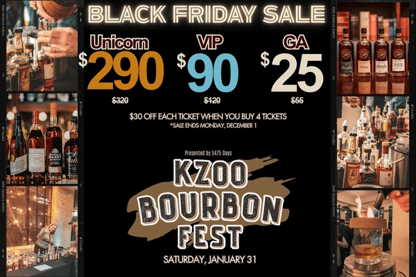 Kalamazoo Bourbon Fest is on Saturday January 31, 2026. The first session runs from 4pm to 6:30pm. The second session runs from 7:00pm to 9:30pm.